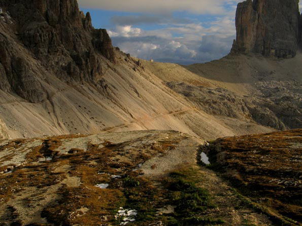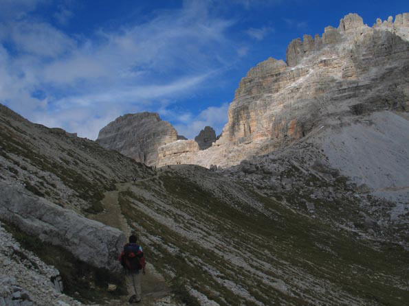 | 9=トレチーメに至る登山道。 尾根に出る最後の部分。 あそこまで行けば、3峰が見えるし、後は下りだけだ、ガンバレ! |