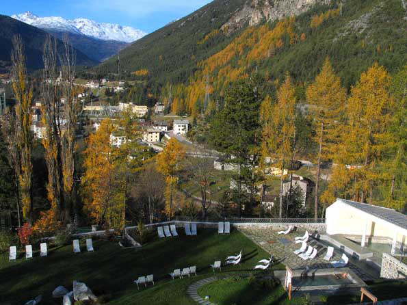 | 1=スイス国境の村ボルミオにて。 近くには良いホテルが無くて、 仕方なく?・・・温泉スパが付いた5星宿に滞在。 朝はこのような屋外温水プールで禊ぎをしてから仕事に出発。 仕事後には打たれ湯をして一日の反省、 そして夕食という聖職者のような生活。 眼が澄んで来た実感有り。 |