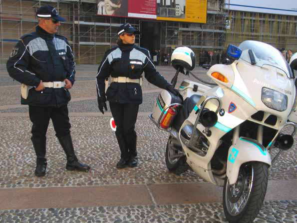 | 11=こちらは広場にて。 さすがにポリスは裸では無かった。 しかし、イタリアなんだからBMWのドイツ車はないだろう? モトグッチかドゥカーティだろう! |