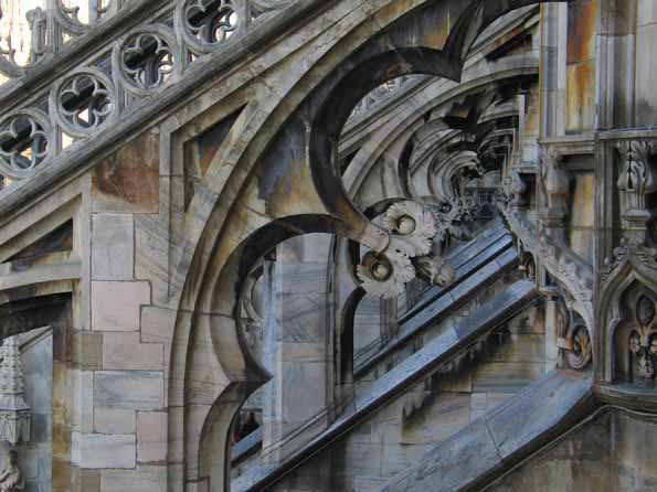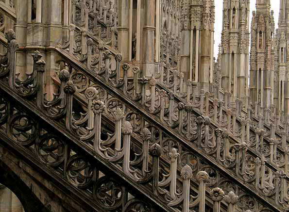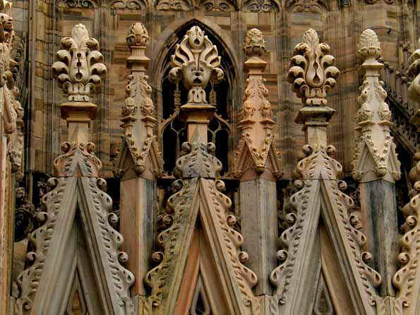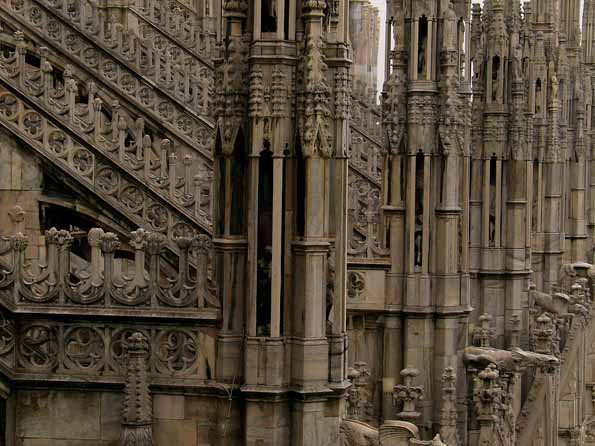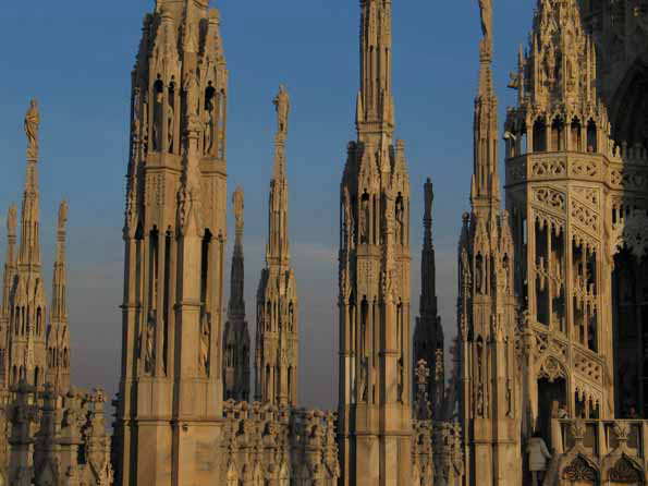 | 15=ドゥオーモ連作。 完成まで500年かかった、世界で三番めに大きい教会。 ゴシック建築としては世界最大。 その装飾の基本は「森のイメージ」だそうだ。 |