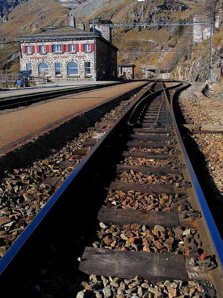 | 6=駅も封鎖されている。 次に開くのはクリスマスから元旦まで。 線路にはアルプスの青い空が映っている。 |