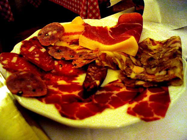 | 2=山の街ペルージャの手づくり貯蔵肉盛り合わせ。 |