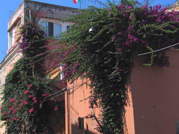 | 1=イスキャ島の漁村にて。 何だか木や花がのびのびとしている。 「どこまでノボせあがったら気が済むんだ!」・・・と叱る人が居ないんだな。 空は青いし、陽射しは強いし、まあ気持ちは判らないでもないよ。 どんどん行きなさーい!。 |