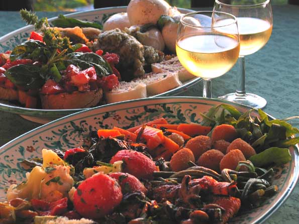 | 10=山腹の荘園にて夕食取材。 前菜だけでかなり満腹。 残念だったのは自家製ワインの不味さ。 やはり白は北だ。 |