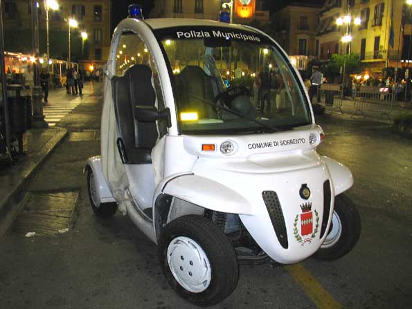 | 12=ソレントの交通整理パトカー。 さすが、イタリア。 奇抜なデザインだけれど、陽気な街に似合っている。 |