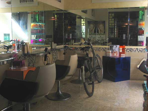 | 13=メインストリート、閉店した床屋に、なぜ自転車が・・・色々なストーリーを考えて楽しくなる。 |