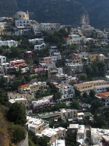 | 14=海岸沿いの入り組んだ絶景の道をアマルフィーまで走る。 女性に人気「どこまで続く白い街」ポジターノのパノラマ。 実は違法建築の集合体。 トスカーナの石造り農家の方が、好きなのはオジさんか。 |