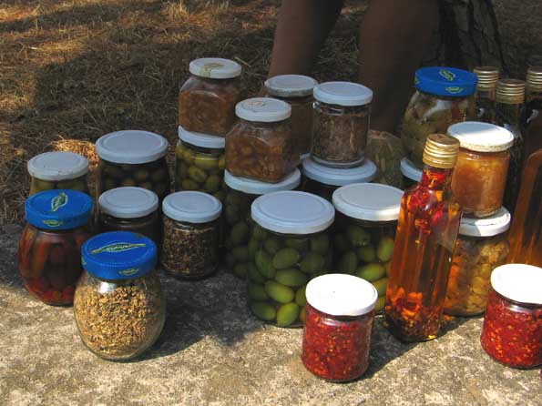 | 16=ビン詰め各種。 ジャムの空き瓶に詰めて売っていたのを発見。 し かし直射日光ガンガンだぜ。 怖くて買えないよ。 |