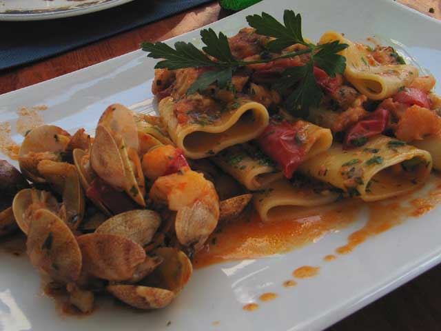 | 18、19、20=ツアーの最後を締めくくるアマルフィー海岸「マリーナ・グランデ」にて。 シェフお任せで色々試す。 粉と海の幸とトマトの、三位一体文化の料理が続々。 その味には完敗した。 手も足も出ない幸せと言うのがある。 |