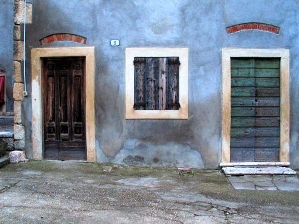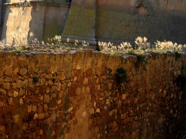 | 23=立ったまま枯れて行く雑草を載せた古い壁。 ピエンツァの諸行無常。 |