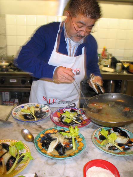 | 8=手造りパスタの魚トルテローニ。 微妙な甘さを殺さないのは、どんなスプマンテか・・・大変な勉強になった。 |