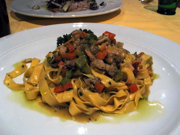 | 14=パドバに移動。有名なMにて繊細な味を試食。 手打ちパッパルデッラにアンペッツォ風野菜、パンチェッタソース。 |