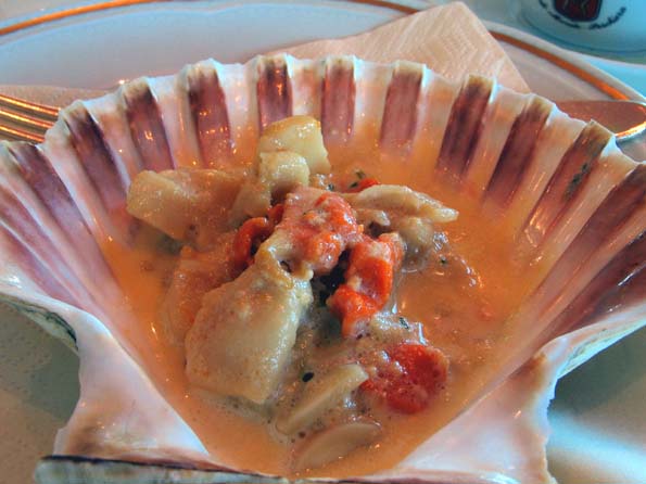 | 13=前菜の盛り合わせ。 イカとムール貝に魚のスープかけ。 |