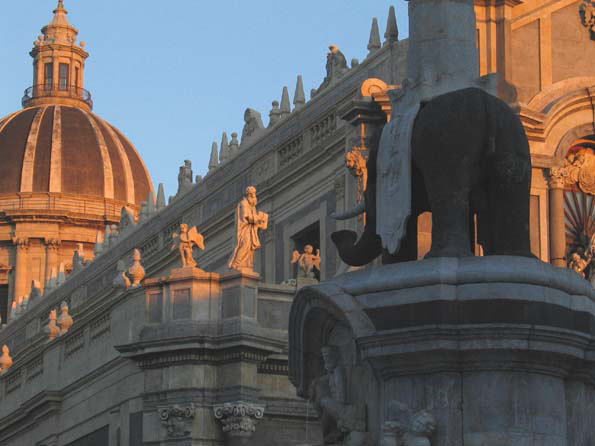| 聖堂の夕陽。 ハンニバル大帝の象らしいです。 |