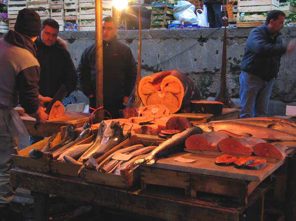 | カターニアの市場スナップ。 早朝から屋外でこの熱気、ハンパではありません。 |