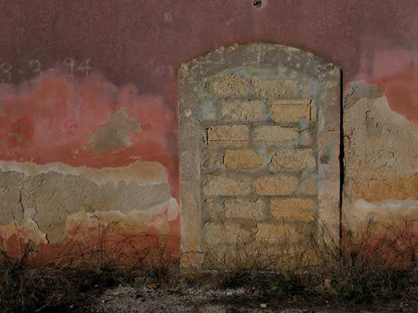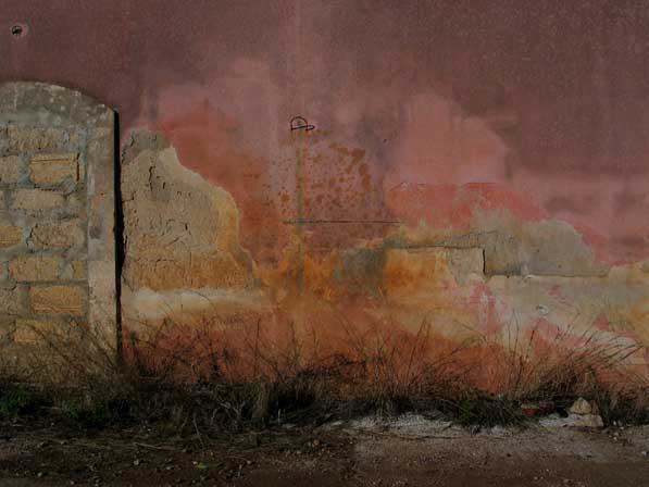 | シラクーザ遺跡地区の建物の壁。色が玉虫色でそれは美しい。 |