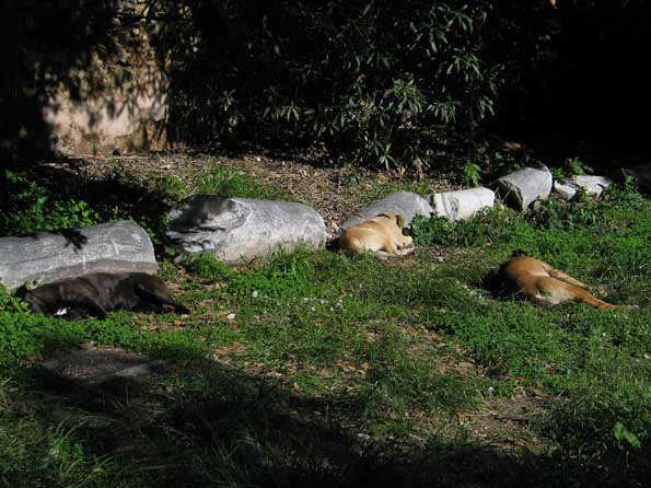 | 遺跡で、のんびりと寝ている犬。ほとんど化石化している感じ。 |