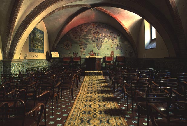 その内部には寄宿舎はもちろん、教会、食堂、図書館、中庭、回廊があり、