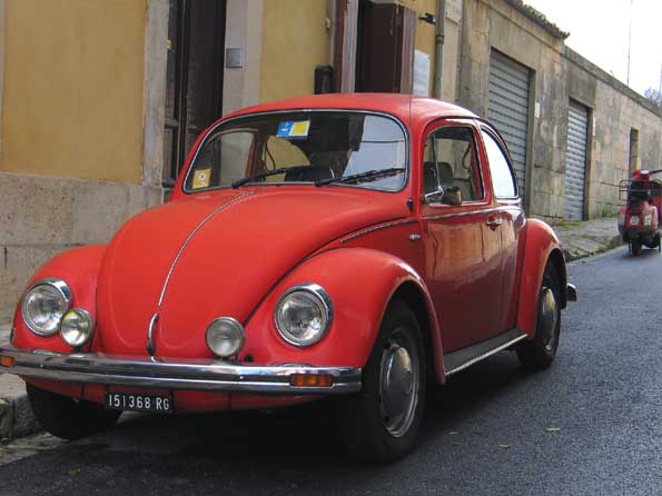 | 3=坂道を登り詰めると人気の無い路地に、 赤い2輪と4輪がヒッソリと対話していた。 (シチリアにて) |
