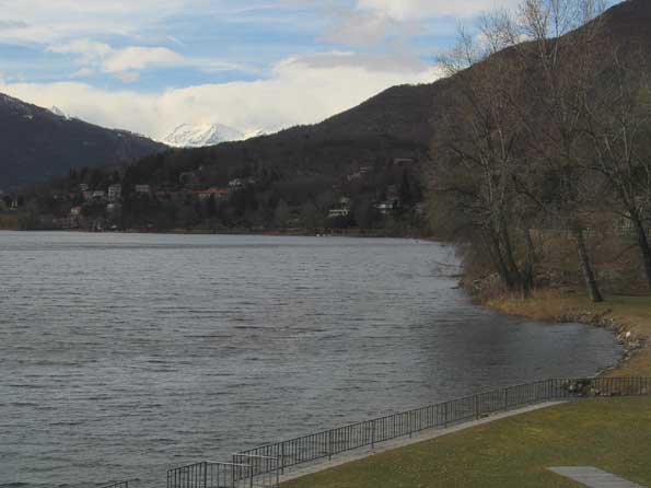 | 9=ミラノ北の小さな沼に面したレストランへ昼食のためにだけ片道80kmを出かける。 季節外れの寒い沼と、その向こうにアルプスが望めるテーブルでいろいろ味わう。 |