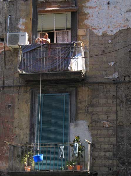 | 6=「パン、ワイン、トマト3ヶ」なんて書いたメモを入れたカゴを3階から降ろして買物する主婦。 どんなテラスにも付く小さな電動モーターと、 外せばそのまま買物カゴになるキットを作れば売れるかな・・・と思うボクは、 まだ日本人あるよ。 |