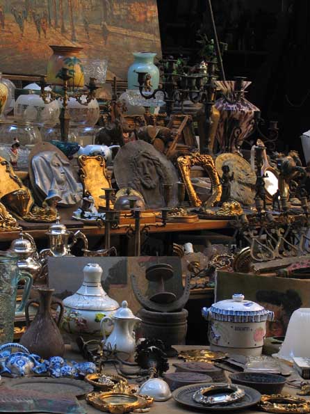 | 7=ガラクタ屋でも主役はキリストとマリア。 だいたい、こういうものを並べている場所が、教会の裏階段だったりして、 もう、笑えてしまう。 カネもらっても要らない、と言いたいものが半分を占める。 |