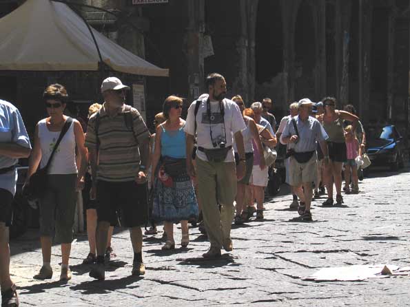 | 9=来ました、アメリカ人団体の「下街ツアー」一行が。 緊張して、列を崩すことなく、黙々と行進してました。 |