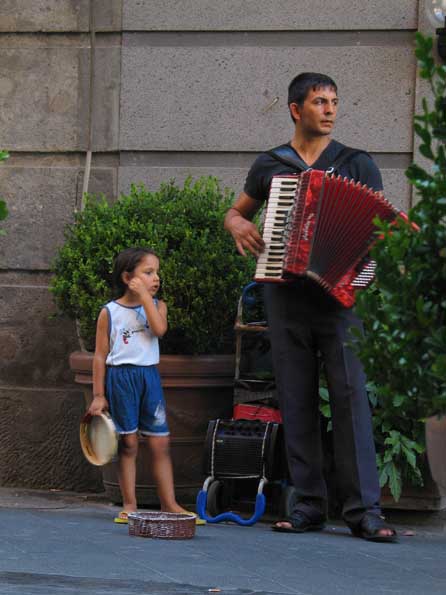 イタリアにあって、イタリアでない、この路上劇場都市の様子をお伝えします。