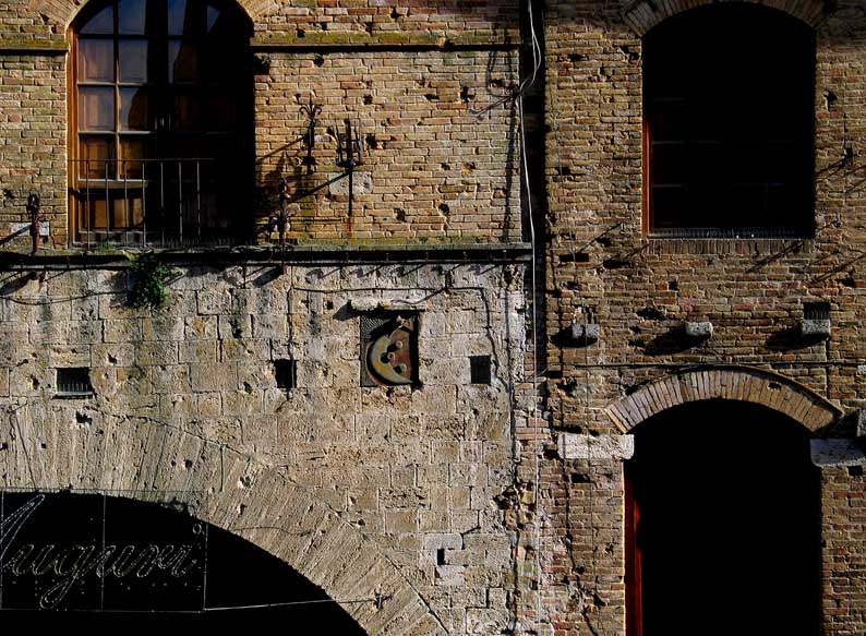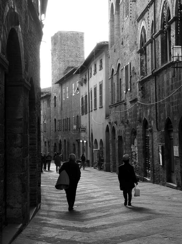 | 4=メインストリートが光り、まばらな観光客が日向ボッコしながら散歩。 その声までが聞こえて来る。イタリアの田舎って、安らぎます。 |