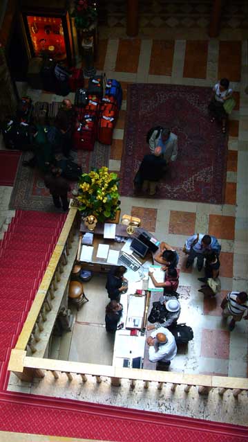 | ヴェニスの大公の住まい「ダンドロの館」をホテルにしたダニエリ。 そのフロントを上から見る。 700年近い歴史を内含する世界的ホテル。 |
