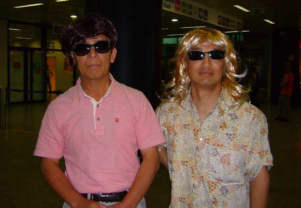 | 17=義理兄とローマ空港にて。 日本から来る友人を迎えに来たが、変装している僕らには気づかないだろう。 出迎えが来ていないのでパニクらせ、人生は甘くないんだよ、と諭すためだ。 旅の収穫第一号を到着早々に贈ることにした。 |