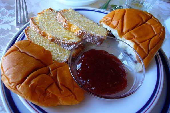 | 9=4星ホテルのパノラマ朝食ルームでアンパンを食べるというのも、