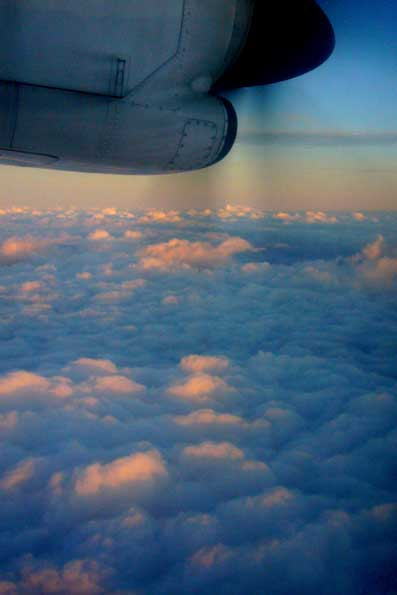 | 20=翌週はドイツ、ミュンヘンへ飛ぶ。 今さらのプロペラ機。 「大丈夫かいな?」と思ったが、エンジンの真横だったので面白かった。 雲の下はドロミーティの夜明け。 曲はもちろん「エコーズ」だが、今日はその前に「狂ったダイアモンド」からメドレーで行く。 |
