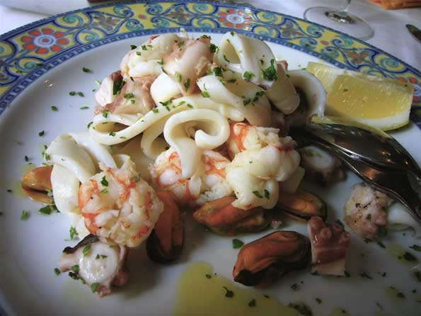 | 7=カラブリアに飛び撮影開始。 初日の夕食。店は完全に外れ。 でもま だこの前菜の頃はそれが判ってなかった。 |