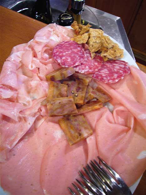 | 14=翌日は某シェフと一年ぶりくらいで食前酒を。 聖なる豚様の各種 盛り合わせ。 エーイ,今日も行ってしまえ!。 |