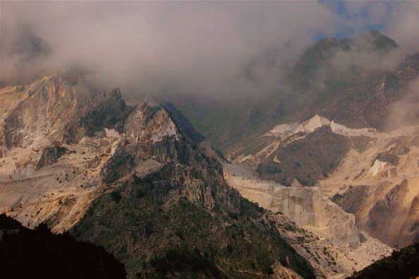 く。 まずは、白いラードで有名な、カラーラの村コロンナータ。 こういう風景でローマ時代から山を切り崩して来た。 |