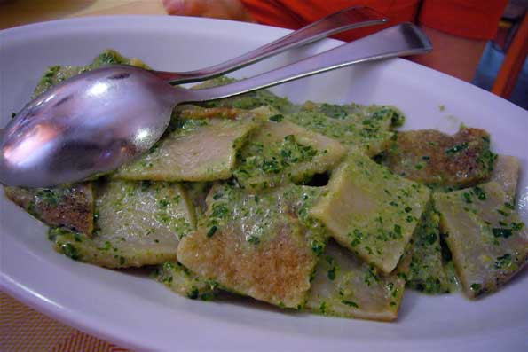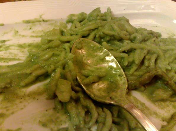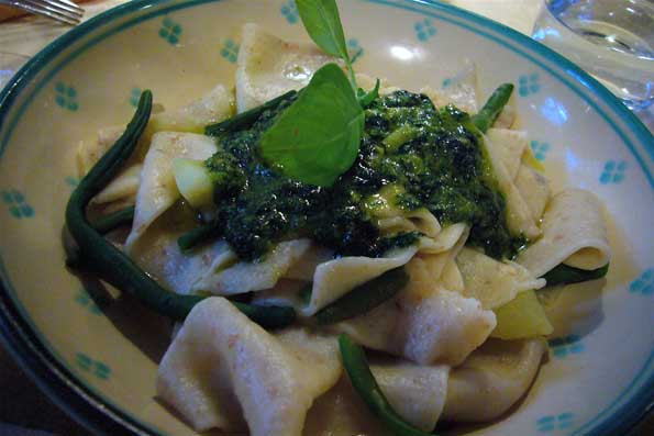 | テスタローリという粉料理にバジルペースト。 |