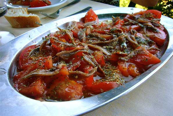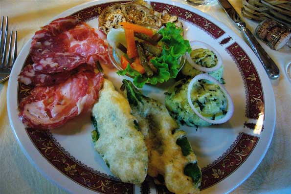 | ここで絶品の白い脂身を味わう。 これは前菜。農民料理の工夫を見る。 |