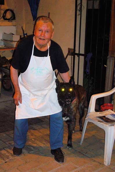 | バーベキュー職人、その1。 ボローニャの丘の店。僕が「芸術的 バーベキュー」と呼ぶ一軒。 犬が恐いねー。今朝一人を咬んだそうだ。 だったら鎖につないどけって! |