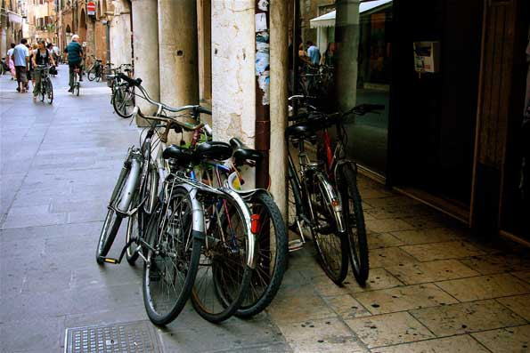 ディネートにかかる。 現場の下見や、ビデオスタッフの面接、市や州との根回し等で大きな事 業になって行くが、レコード会社の予算が限られていて、苦労する。 これは下見の時に撮ったフェラーラ市街。 自転車が多い街で、ご覧の通り |