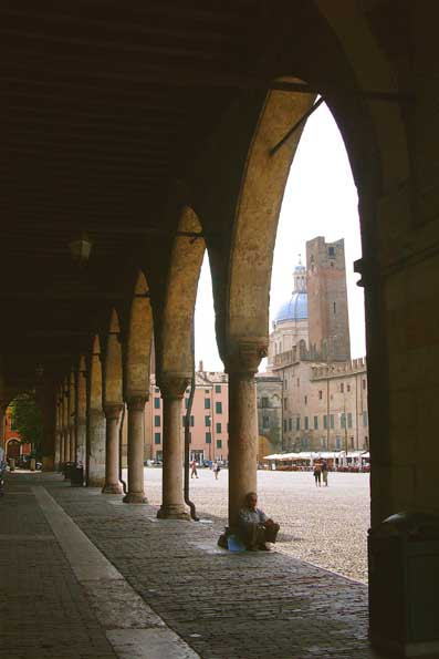 | 1=マントヴァの広場にて座るアジア人(これはお客さんではありません、念のため)。 今はバカンスの時期でイタリア人が街に居ない。 ほとんどが観光客か、バカンスに出られない異国人のみ。 観光施設の中には イタリア人のオバちゃん達が居るが、固まっておシャベリしている。 そ ういうのを聴くのが実に楽しい。 バカンス前後なので考えるのはそのこ とばかり、アタマは半分機能していない。 僕は「アタマを振ると、サラサラと(砂浜の)砂の音がする状態」と呼んでいる。 |