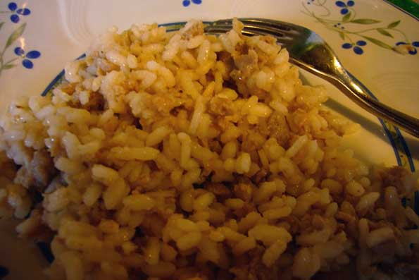 | 15=リゾットではあるが、中身は豚細切れ、ソーセージ、脂身 「も う、とにかく豚のいろいろなものよ」とオーナーが言うので「聖なる豚 様リゾット、ですね」と言うと 「そう、まさにその通りの名前だわね」 と盛り上がる。 何か、きりなく食べられる美味しさで、そこをまた赤ワ インで喉を洗って行く。 |