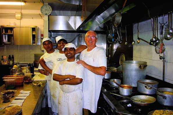 | 18=厨房にご挨拶。 次回のツアーで厨房に入れてもらうための表敬訪 問をしておくのは、添乗員の鑑ですな。 アジア人の見習いコックさん達 が帰国後に世界に広めて行くマントヴァ料理。 文化は流れ、広まって、交わって、またそこから新しいものが生まれて来る。 これは、音楽と料理の分野の特徴。 つまり、言葉は要らない世界。 |