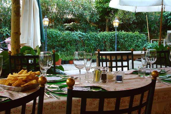 | 11=無粋なるオトコ二人連れに料理が出て来る、出て来る! 菜園の宝、ミンチョ河の恵みもの、豚加工のバラエティ各種。 「もう、ワタシ、今日は酔いますわよ、あとは知らないから・・・」と いう気持ち悪い考えが浮かびそうになるが、 オトコ二人はひたすらプロ セッコを飲んで行く。 |
