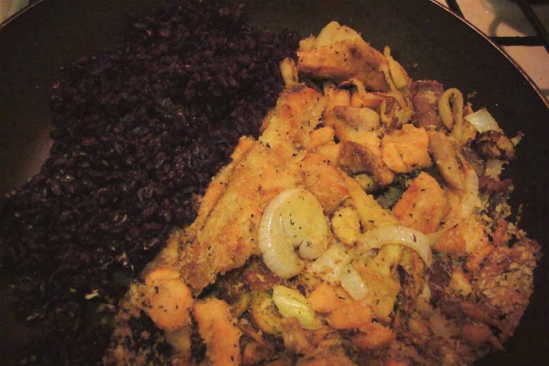 | 1=ブラックライスに凝っていた時期。 これは魚一口フライとの組合わせ。 噛んでいて飽きが来ない。 |