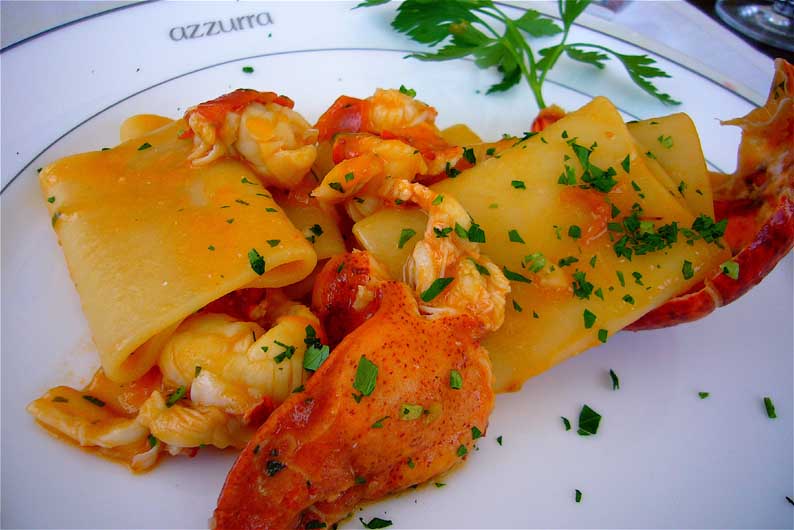 | 21=オマール海老にパスタはやはりパッケリ! 噛みしめていると、パス タのうまさがジワジワと伝わって来る。 ここは、絶対にスパゲッティではないな。 パッケリにパキーノトマトという、絶妙の組み合わせ。 |