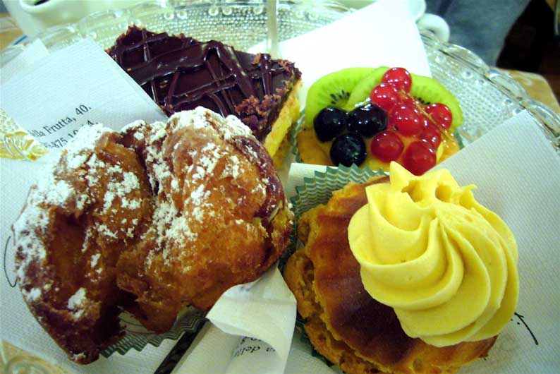 | 38=街で一番有名なケーキ屋さん。 ミルフィーユが絶品。 朝から試食ツアーの開始。 食べたのは・・・例の2人だけだったが。 |