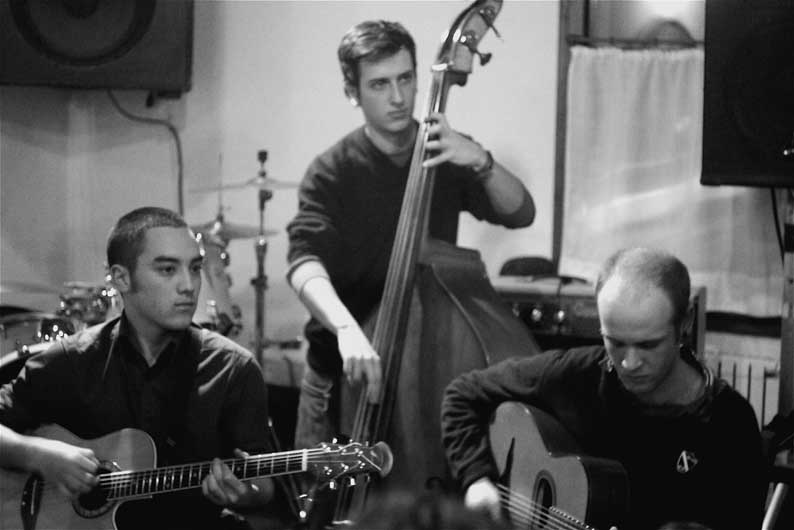| 41=世界的に無名な路上音楽家達の記録シリーズ。 この日は新曲の追い込みで、4人が討論しながら展開をまとめあげて行く。 「まずは基本となるリフを確認しよう、こうだぜ」 |