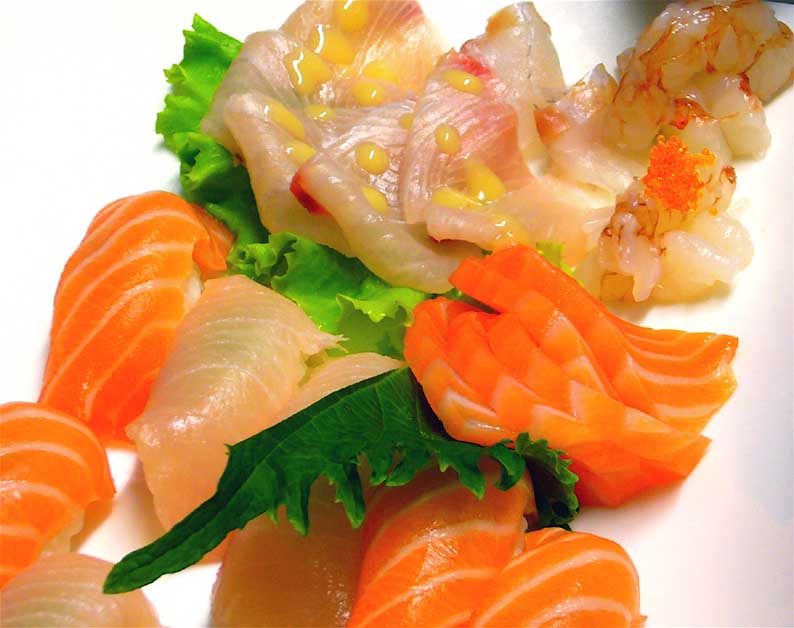 | 18=例年の、日本からのケーキ職人のVIP通訳で3日間、豚になる。 これは海辺の街での昼食。 生ものの盛り合わせで、北イタリア白ワ インをすいすい。 |