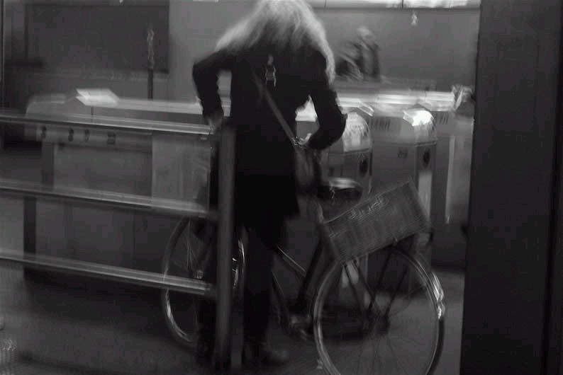 | 地下鉄に乗ろうとする自転車。 無理してでも改札口を通過だ。 |